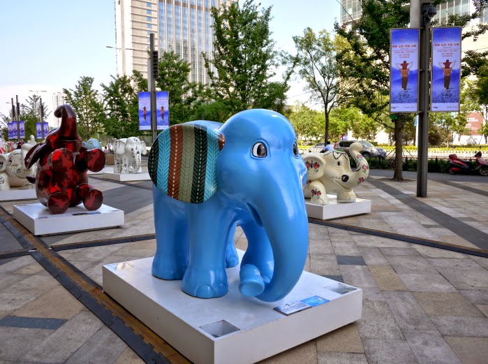 這是2014年大陸五一連假時,在瀋陽高檔百貨公司萬象城擺出的大象公仔,這天剛好路過參觀了一下。可以說是當時為了五一長假特別搞出來的藝術展覽吧?萬象城也常定時舉辦展覽活動,整體說來雖然市府恆隆廣場又更高了一個檔次,但活動最多的應該是萬象城。可能也跟青年大街上基本上都是住有錢人比較多吧?而地區就在萬象城附近