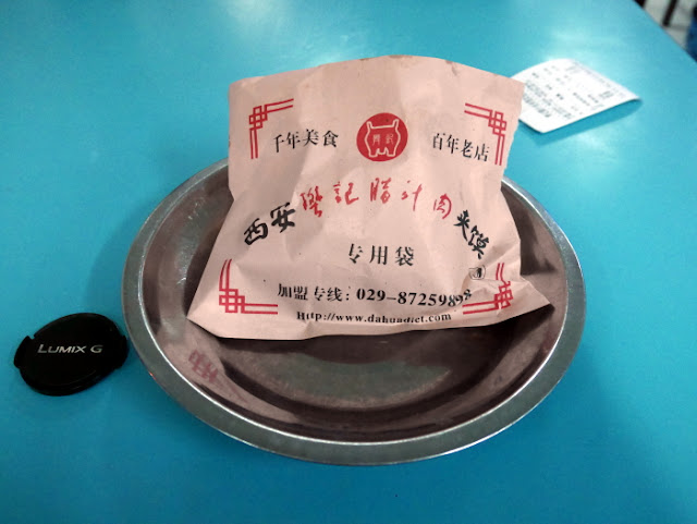 這天參加西安西線一日遊旅行團,回程在鼓樓下車,導遊下車前介紹了若干小吃,沒想到樊記腊汁肉夾饃就在鼓樓南邊不遠的地方,雖然雷克斯我有大眾筆記,但因先前有吃過肉夾饃,因此沒特別注意,主要是剛好下車,想著錯過這回估計沒機會了,決定再吃一回肉夾饃,當下做的決定果然是對的,後來果然沒時間再訪