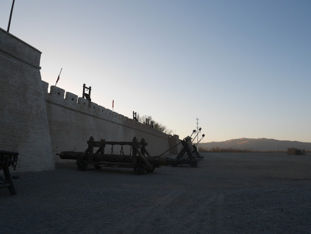 但說歸說,其實逛起來若不拍照玩耍,真的沒啥意思,而且天冷,短短一小時的參觀時間我就跑了兩次茅廁,而且這裡的茅廁還屬於鄉下等級,正常廁所未開放,可想而知敦煌古城的觀光程度,用東北話說:不咋的