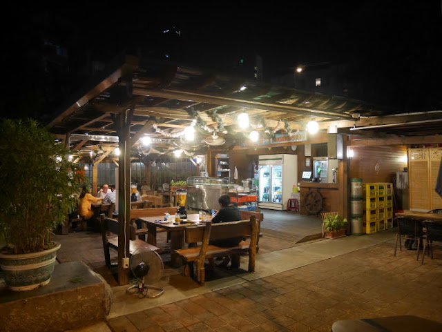 於是來到自來水園區附近的享你好酒庭園餐廳,拐拐這裡還有如此地方?開放式啤酒花園兒!這輩子還是頭一回來,夏天的晚上在此喝啤酒吃熱炒倒是不錯的享受。